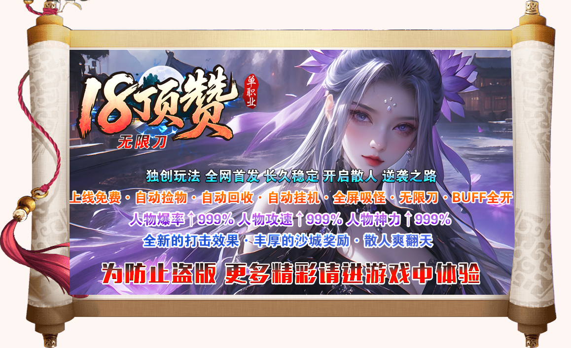 ◆18顶赞◆120格大背包◆免费自动挂机◆免费自动回收◆免费自动捡取◆自动吸怪◆自动穿戴◆无限刀◆